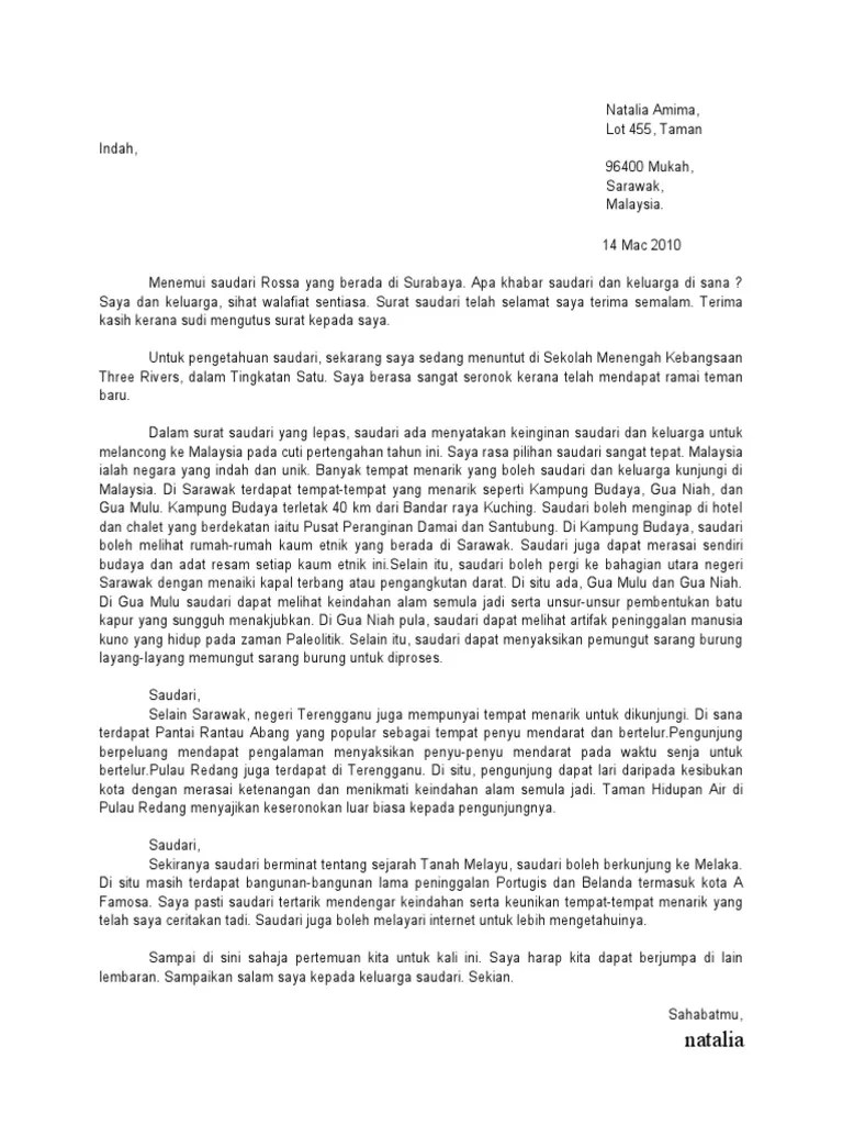 Contoh Karangan Jenis Surat Kiriman Tidak Rasmi Spm Home Design Studio